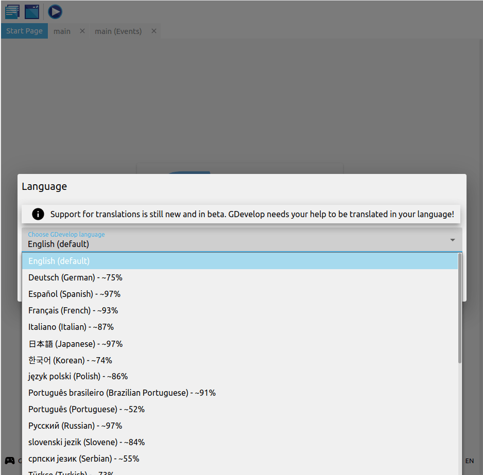 You can help translate GDevelop into your language and report any mistakes. Your help is greatly appreciated.