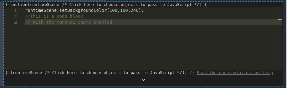 Code editor theme changes how the JavaScript code block looks.