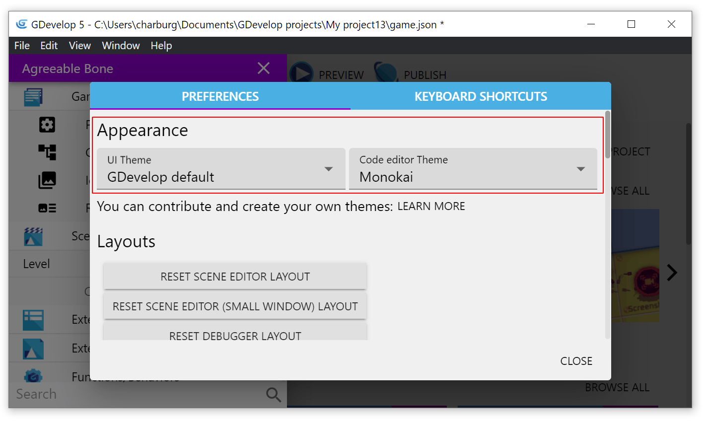 You can change how GDevelop looks and behaves to suit your preferences.